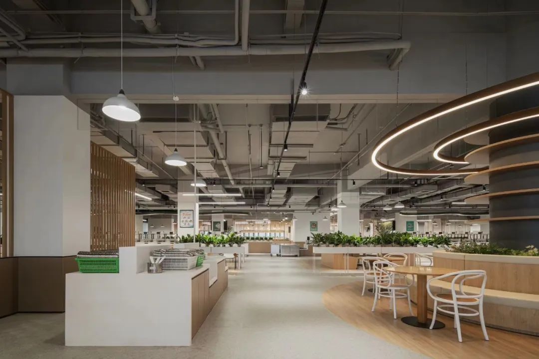 食堂在設(shè)計(jì)時(shí),就充分考慮這還是一個(gè)社交空間,空間上分割成滿足不同社交需求的空間,靈動(dòng)多元。